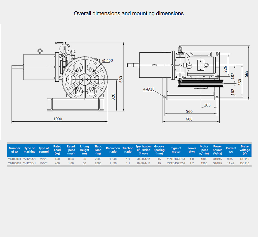 Mounting: mounted in machine room